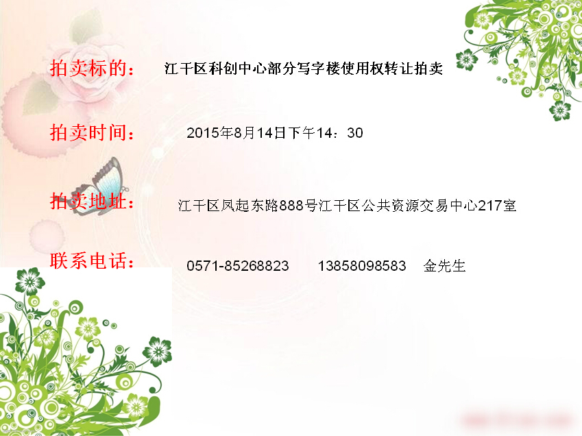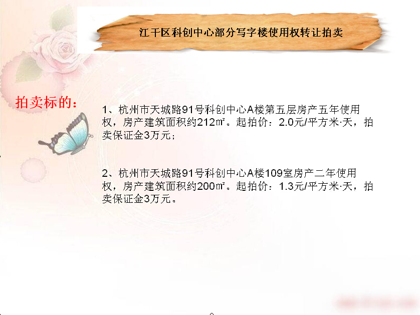 江干區科創中心部分寫字樓使用權轉讓拍賣