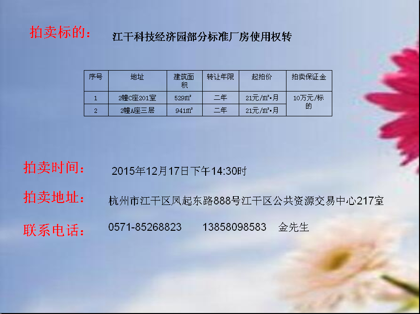 江干科技經濟園部分標準廠房使用權轉讓拍賣