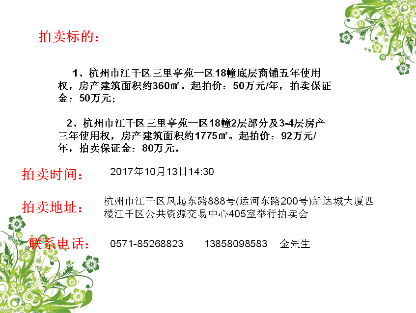 江干區三里亭苑一區18幢部分房產使用權轉讓拍賣