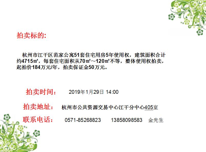 杭州市江干區范家公寓51套住宅用房5年使用權
