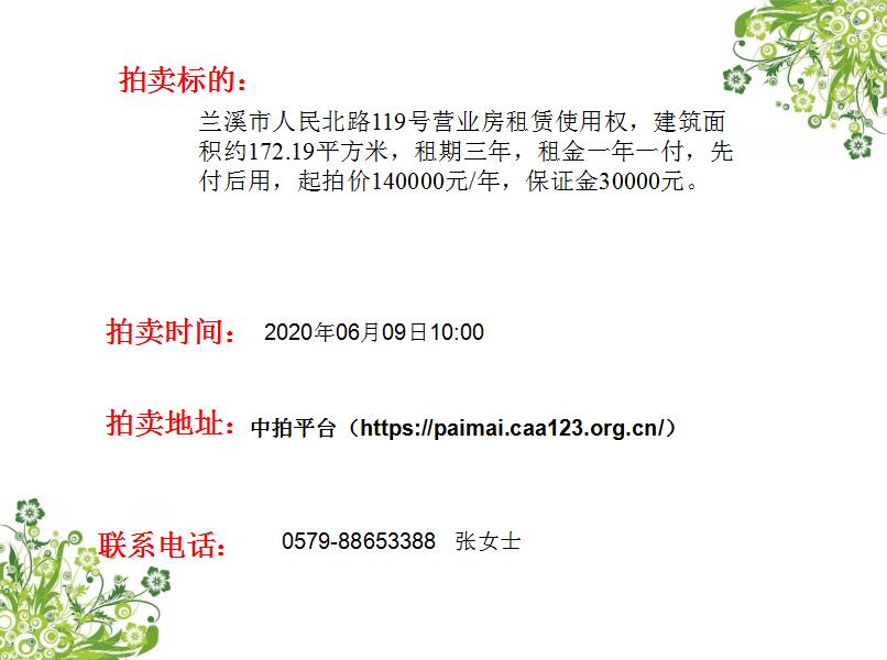蘭溪市人民北路119號營業房租賃使用權拍賣