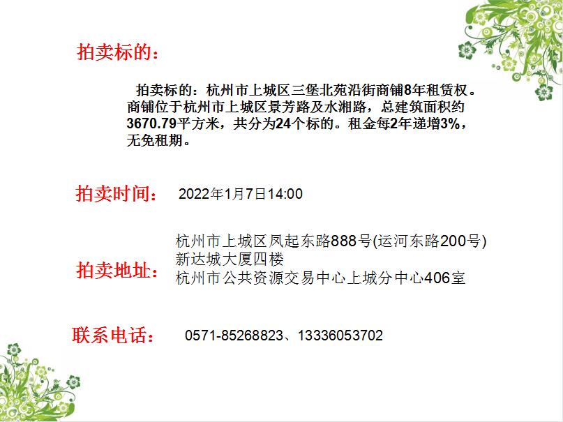 杭州市上城區三堡北苑沿街商鋪8年租賃權