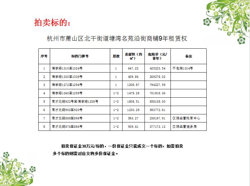 杭州市蕭山區北干街道塘灣名苑沿街商鋪9年租賃權
