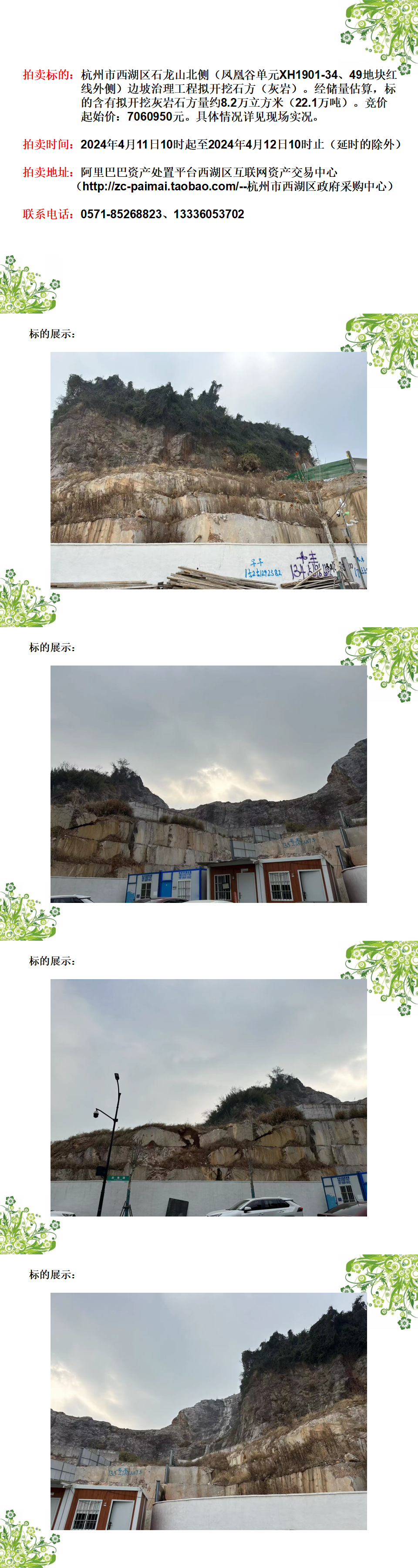 杭州市西湖區(qū)石龍山北側(cè)邊坡治理工程擬開挖石方(灰?guī)r)