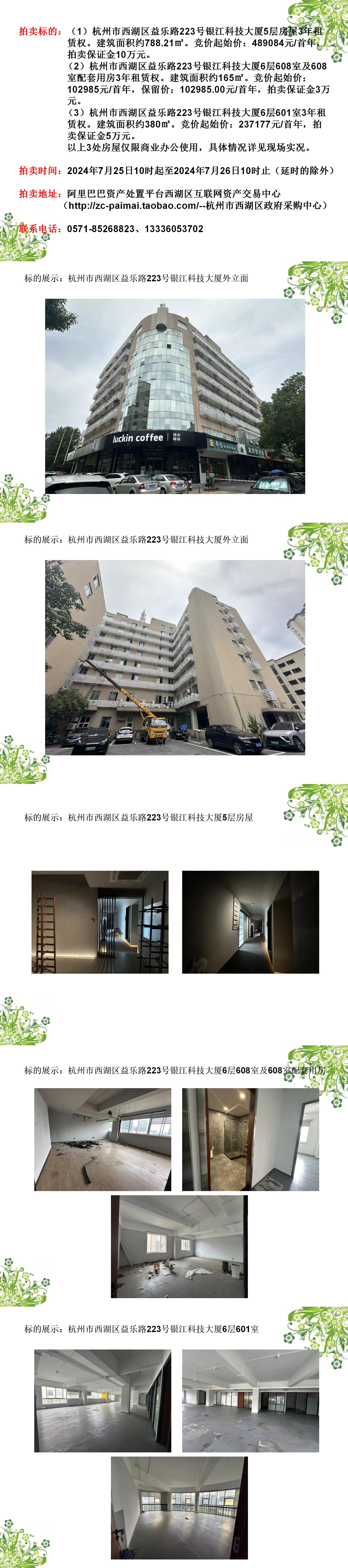杭州市西湖區益樂路223號銀江科技大廈3處房產3年租賃權拍賣