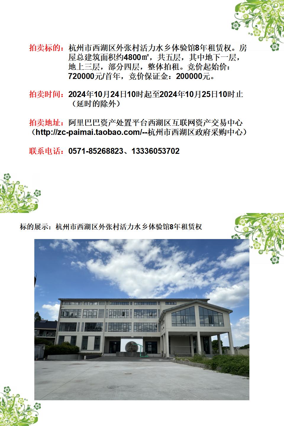杭州市西湖區外張村活力水鄉體驗館8年租賃權