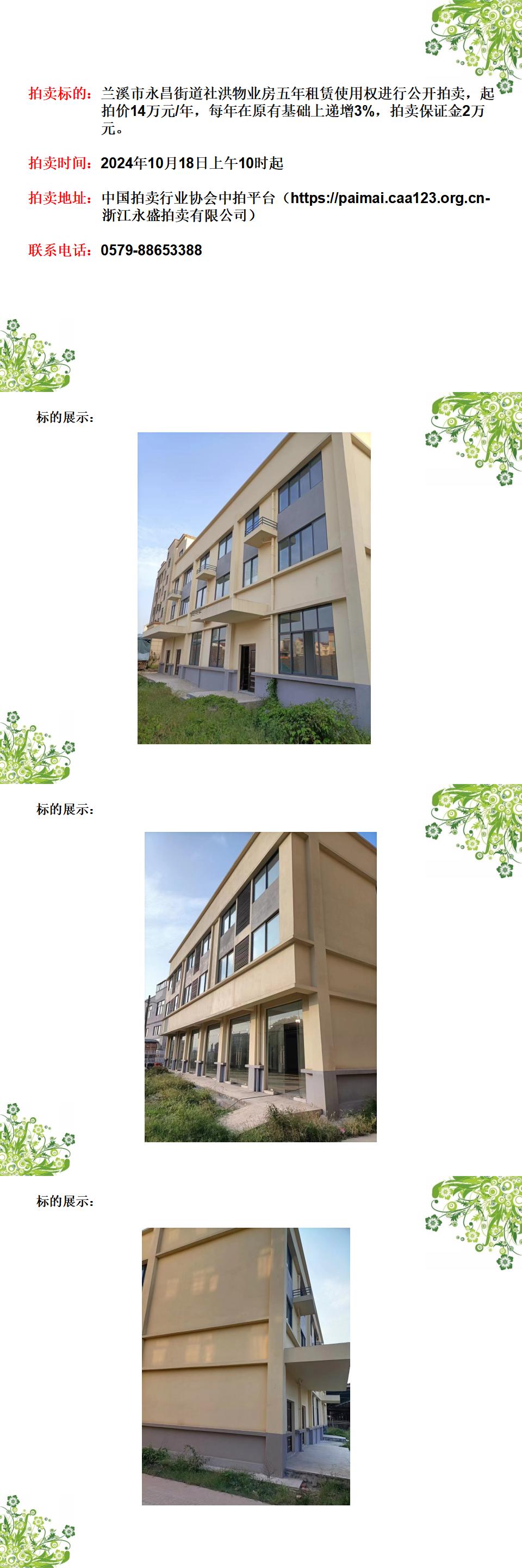 蘭溪市永昌街道社洪物業房五年租賃使用權