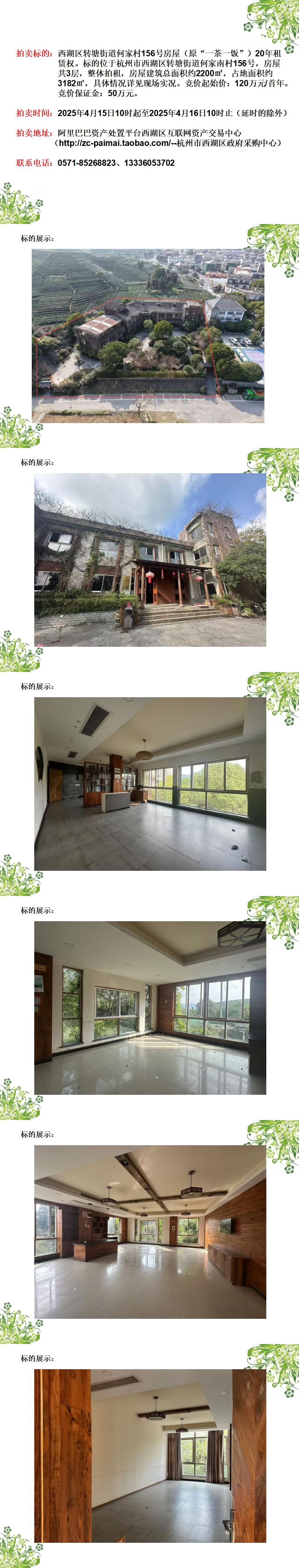 西湖區轉塘街道何家村156號房屋(原“一茶一飯”)20年租賃權