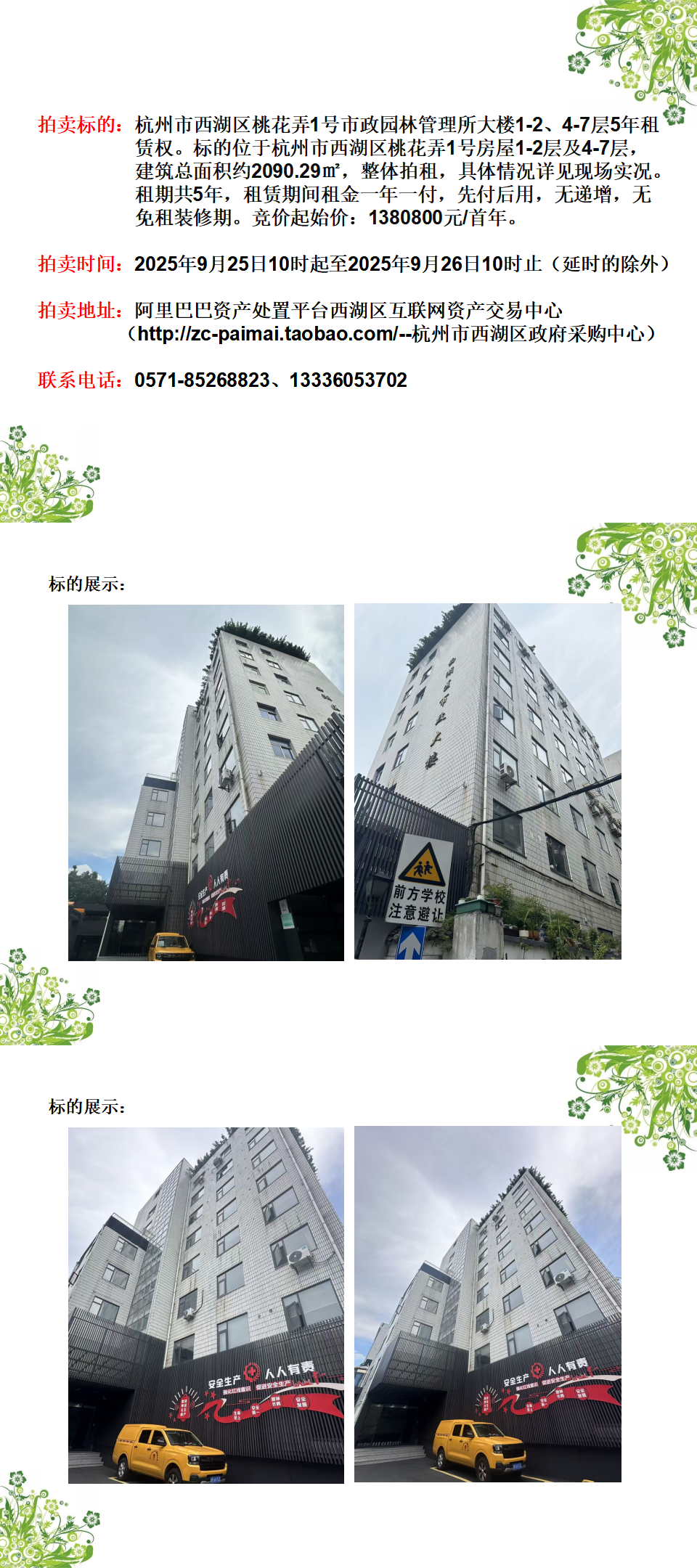 西湖區桃花弄1號市政園林管理所大樓1-2、4-7層5年租賃權