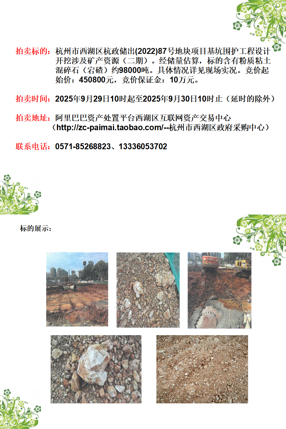 杭政儲(chǔ)出(2022)87號(hào)地塊工程開挖涉及礦產(chǎn)資源(二期)