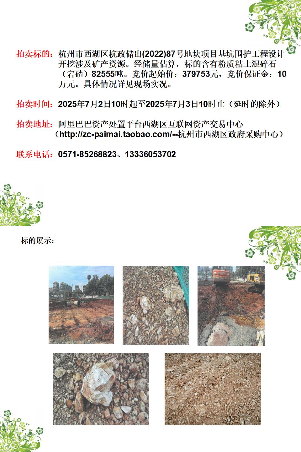 杭政儲出(2022)87號地塊項目基坑圍護工程設計開挖涉及礦產資源